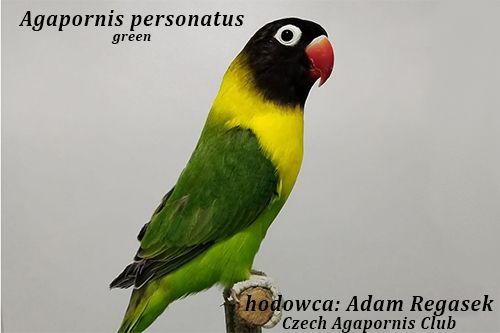 Wzorce wystawowe wymagają całkowicie żółtej piersi bez czerwonego odcienia. Każdy, kto hoduje zielone Agapornis personatus, może zaświadczyć, że wyhodowanie odpowiedniego zielonego osobnika bez czerwonego odcienia na żółtej piersi nie jest tak łatwe, jak mogłoby się wydawać, ponieważ nawet na wolności nie wszystkie Agapornis personatus mają całkowicie żółtą klatkę piersiową. Ważnym aspektem jest wybór ptaków rodzicielskich. Jest możliwe, że piękna para nadal będzie wydawać młode z dużą ilością czerwieni na klatce piersiowej ale wyniki hodowlane mogą być lepsze, jeśli zaczniemy od pary z najmniejszą ilością czerwonego odcienia na klatce piersiowej.