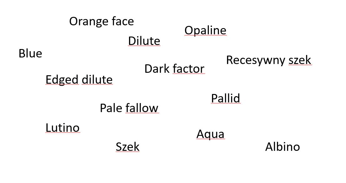 - Kombinacje wielu mutacji eumelaniny są niepożądane (np. nie powinno się łączyć koloru cinnamon z dillute).