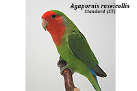 Podobnie jak u papużek falistych tak i u Agapornis roseicollis ptaki pokazywane na wystawach są większe i bardziej jaskrawo ubarwione w porównaniu do typu dzikiego.