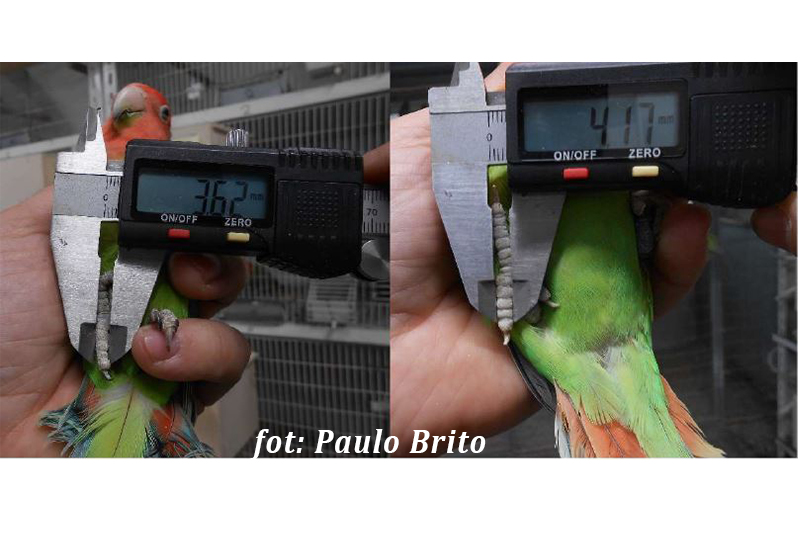 Pomiary nierozłączki czerwonoczelnej "normalnych" rozmiarów i "longfeather typ 3":