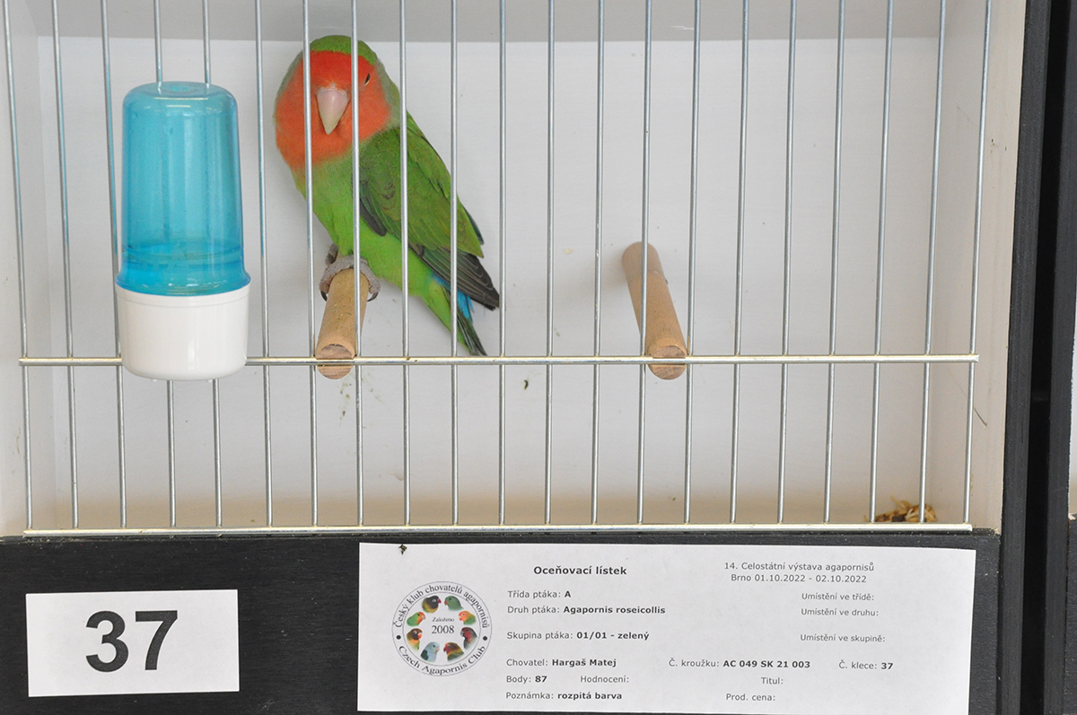 Trzecie miejsce wystawy: agapornis fischeri (nierozłączka fischera) - hodowca Petr Kuncar - 92 pkt
